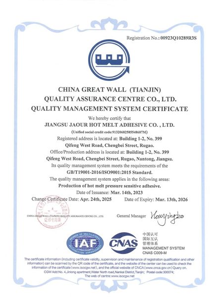 • 中国 Shanghai Jaour Adhesive Products Co.,Ltd 認証